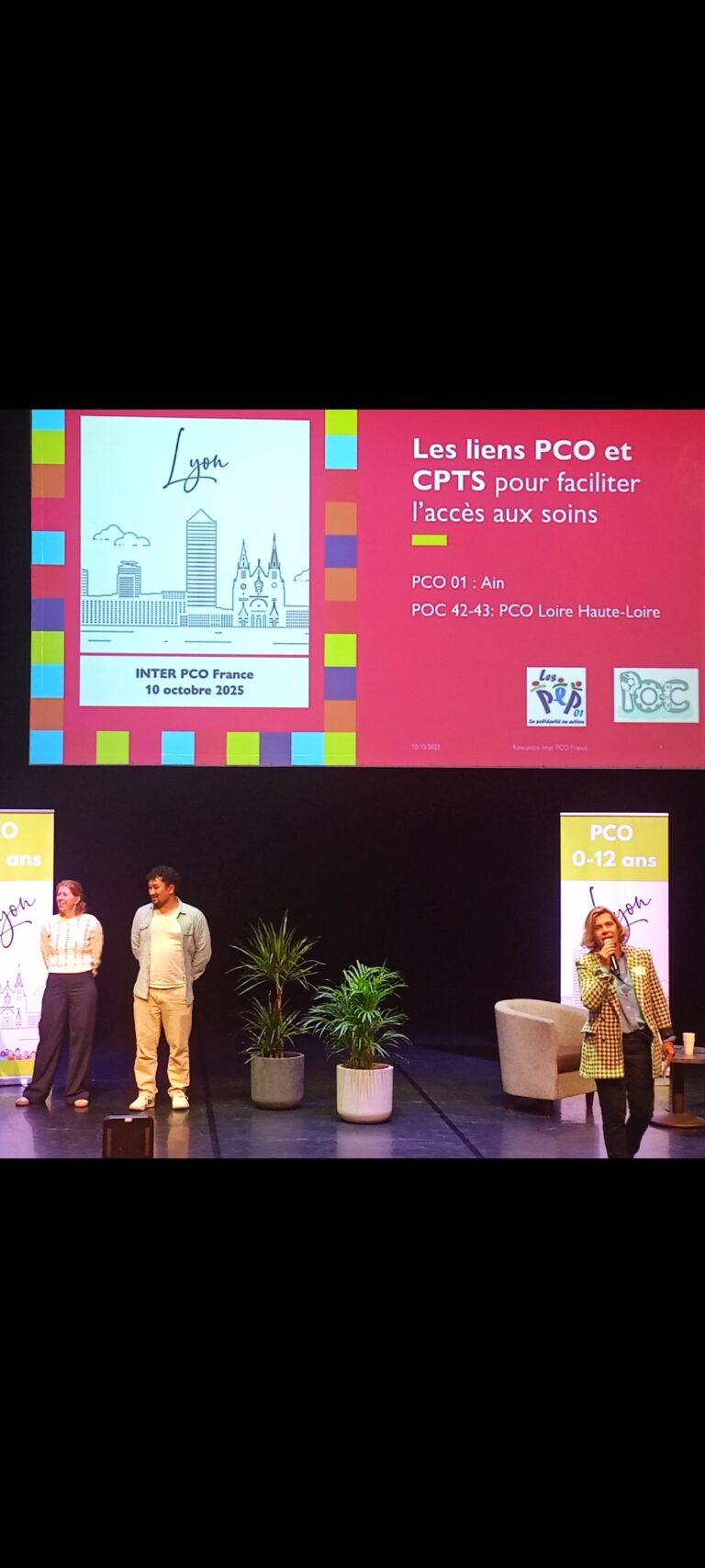 Le 10 octobre 2025, nous avons participé à la première rencontre nationale des Plateformes de coordination et d’orientation (PCO) pour soutenir et enrichir la communauté de pratique autour des troubles du neurodéveloppement. Cette journée a été proposée par les PCO Auvergne-Rhône-Alpes, à Lyon suite aux rencontres régionales réalisées une fois par an. À cette occasion, Laurine PERRIN, Directrice médicale et Yannick STAROWICZ, Chef de service ont présenté le travail fait avec les CPTS pour faciliter l’accès aux soins.