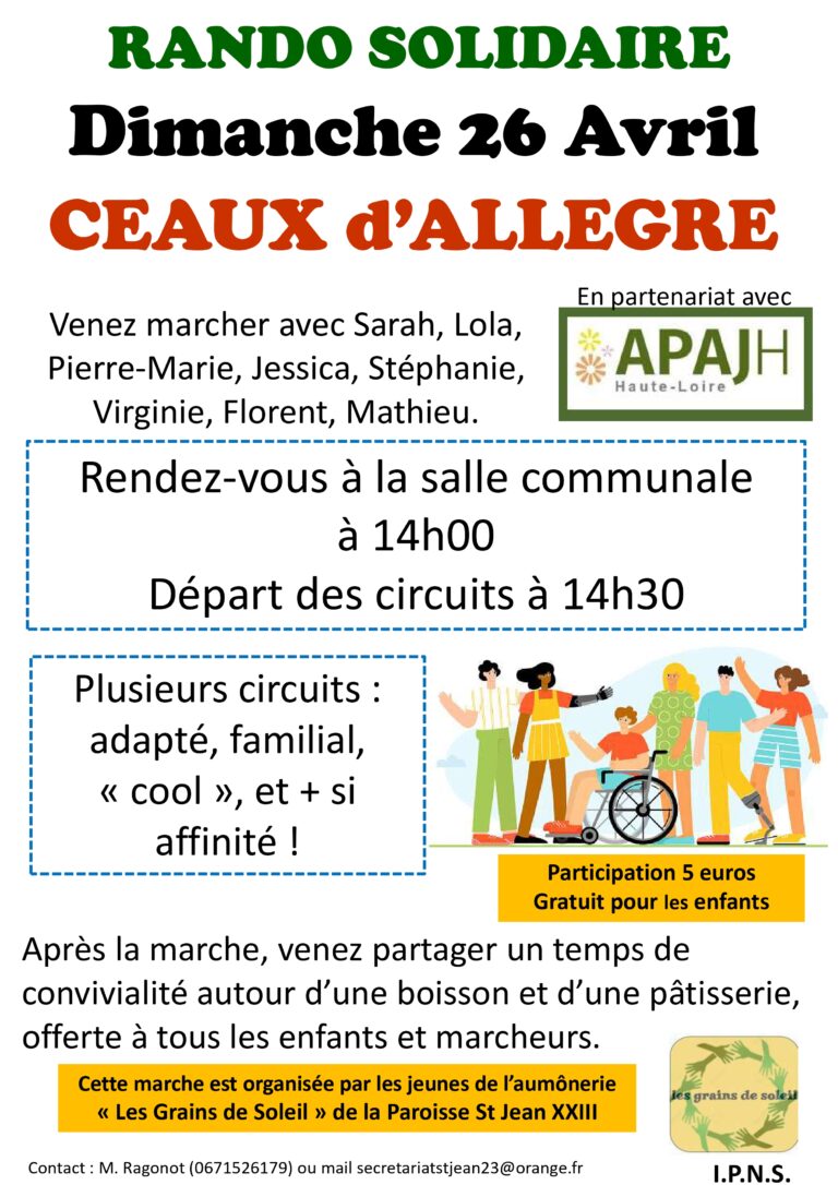 RANDO SOLIDAIRE – Dimanche 26 Avril – CEAUX d’ALLEGRE